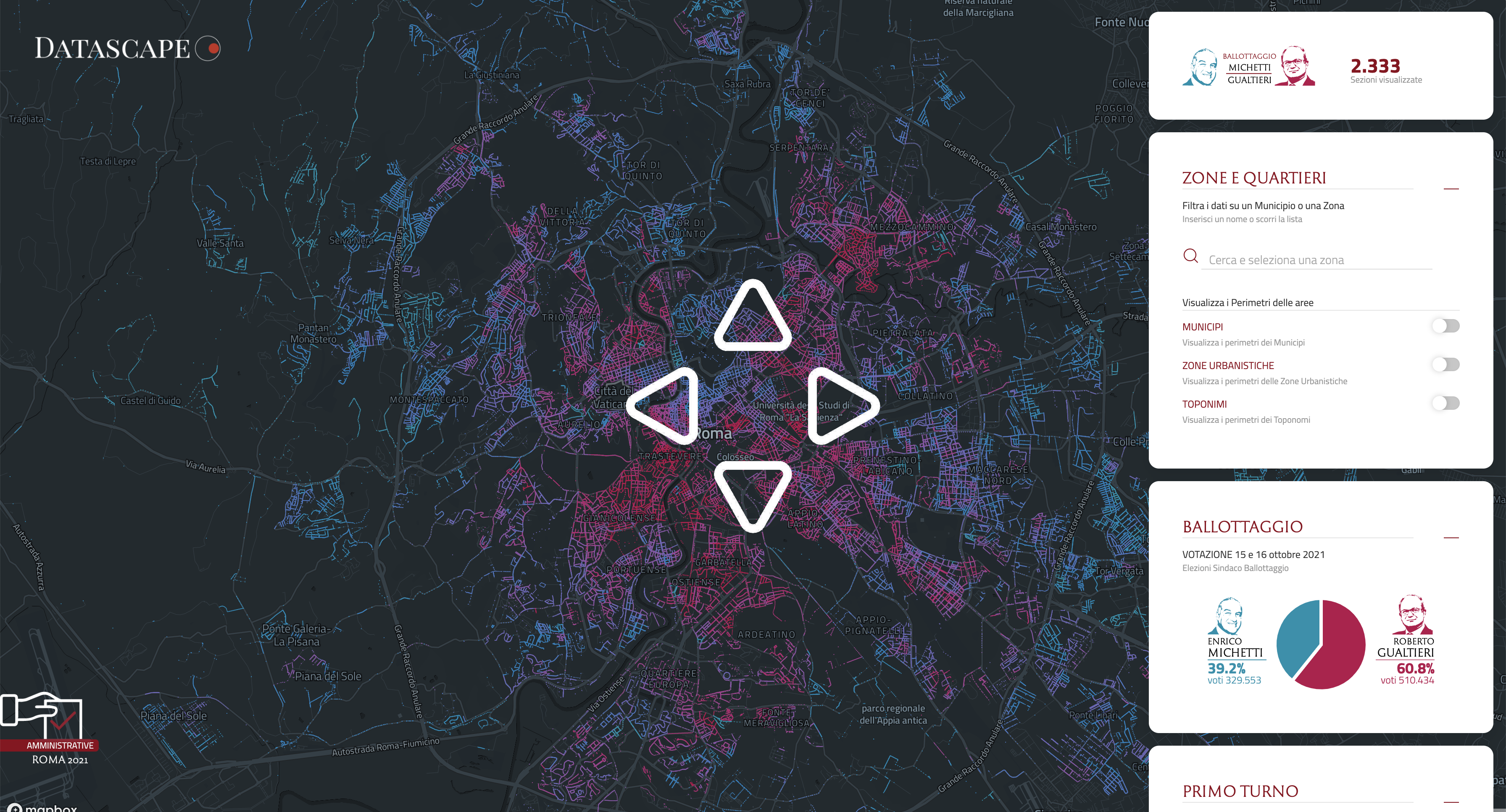 I dati nelle tab laterali si aggiornano sulla base delle sezione elettorali visibili.